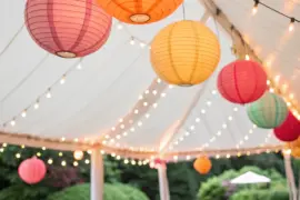 Suspend sunshades for a whimsical and singular backdrop. It signifies an artistic strategy for injecting visual intrigue above your attendees.