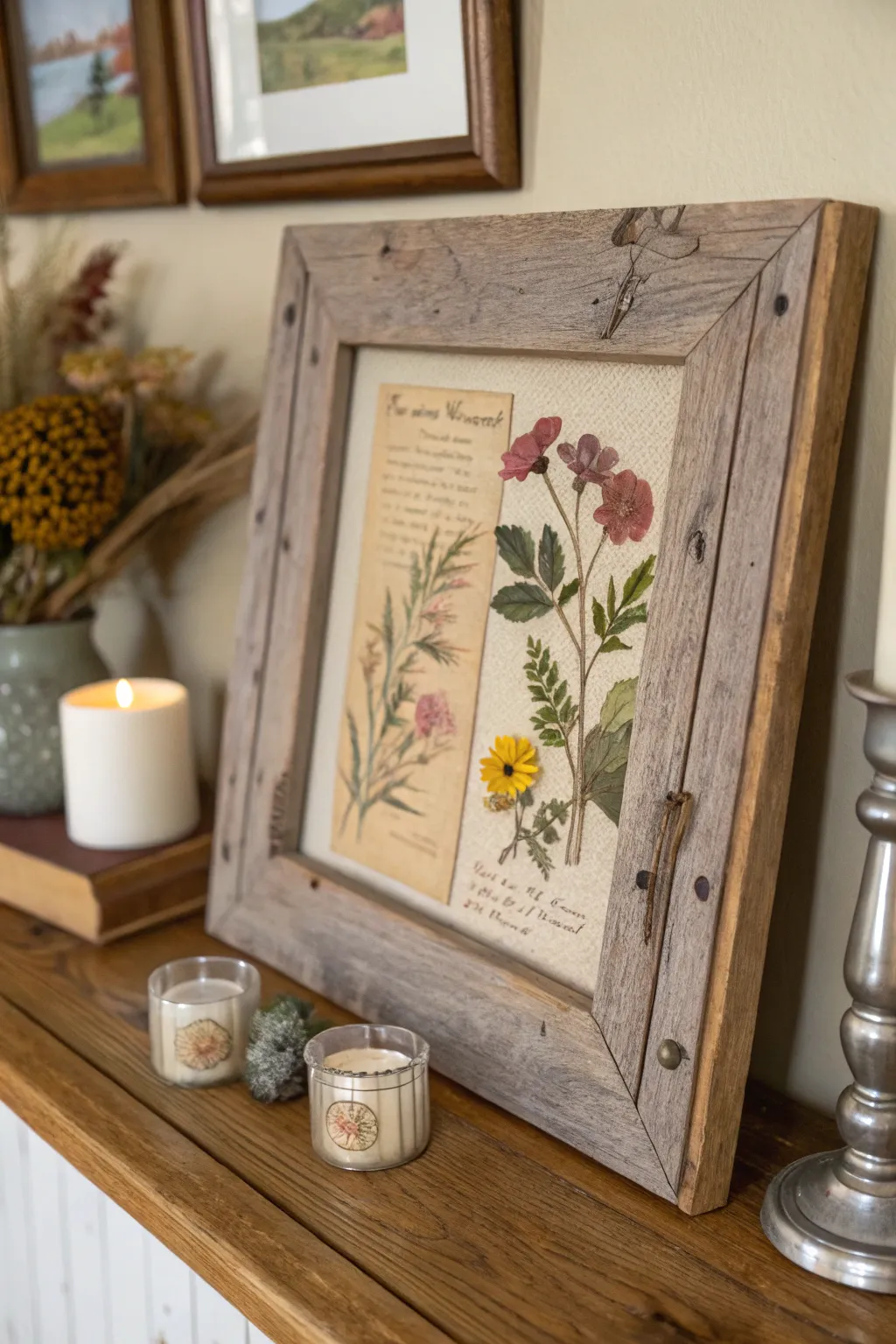 - Garland of Artificial Fall Foliage: Bring a warm touch to your barnwood frame with vibrant artificial autumn leaves and garlands.