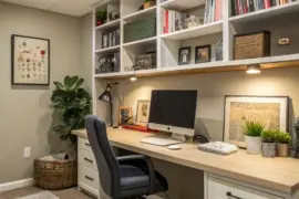 Employ resourceful storage solutions such as built-in shelving to maintain an organized space. I often utilize this approach to efficiently use every available space.