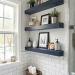 - Country-Style Timber Floating Shelves: Elevate your bathroom’s warmth and flair with charming country-style timber floating shelves today!