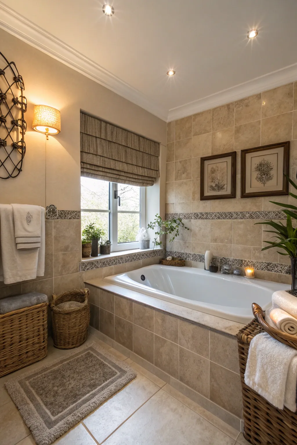 - Neutral Stoneware Wall Tiles: Transform your bath through sophisticated stoneware tiles, magnifying its calming neutral aesthetic effortlessly.