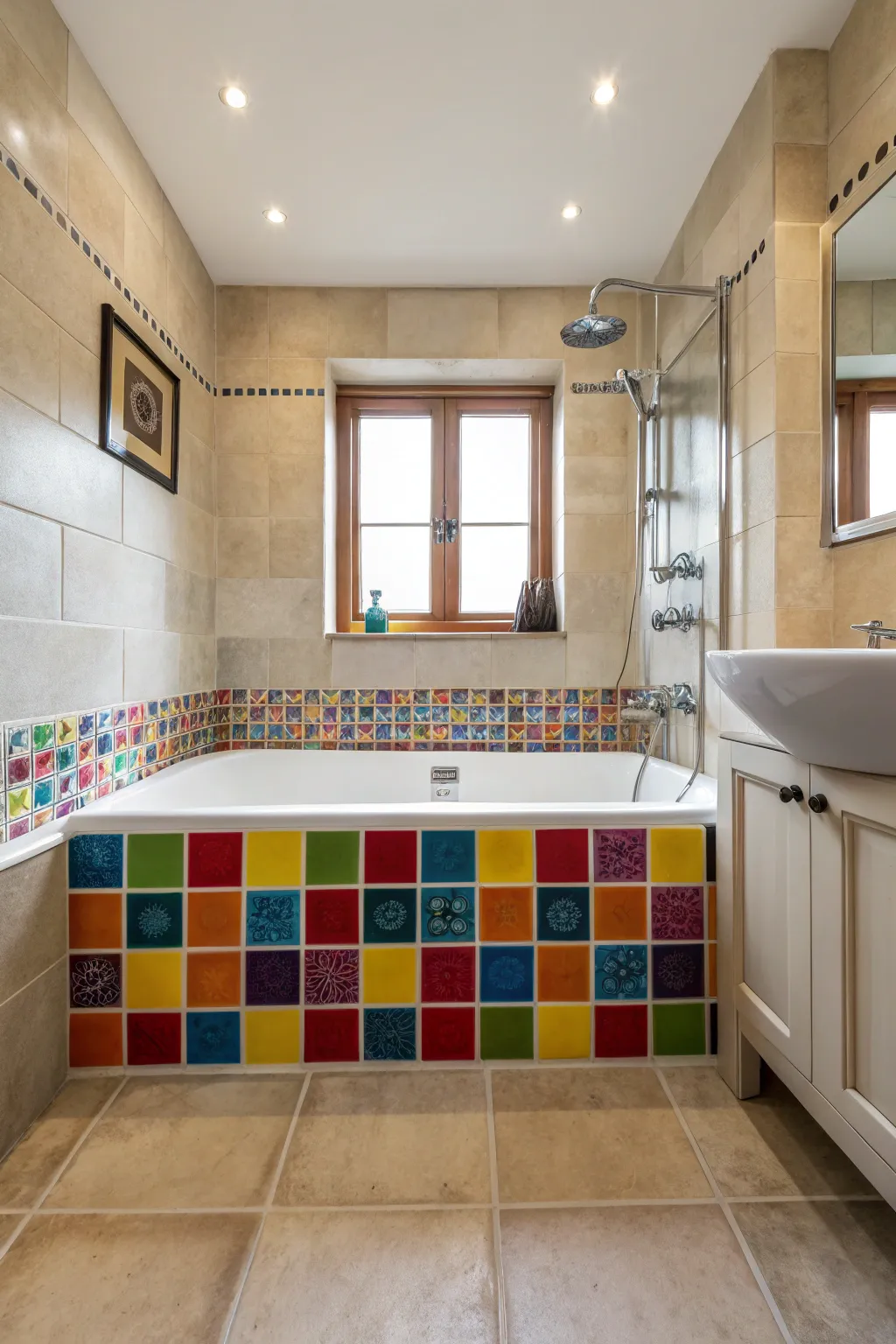 Color pop tiles add a vibrant punch to your bathtub area.