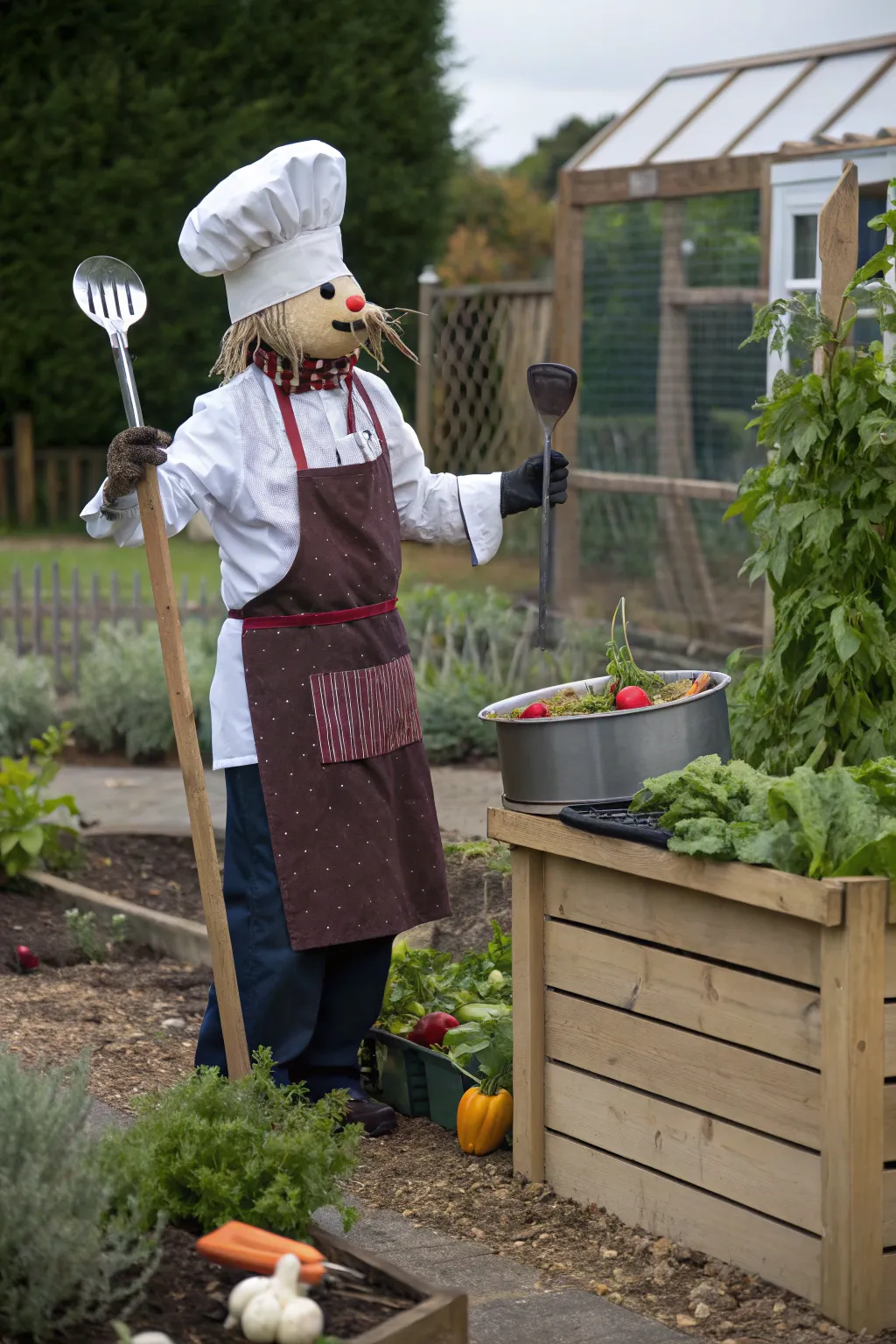Orchestrate a culinary tableau featuring your scarecrow as the chief, furnished with an apron and culinary implements. It’s a scrumptious means to augment the competition!