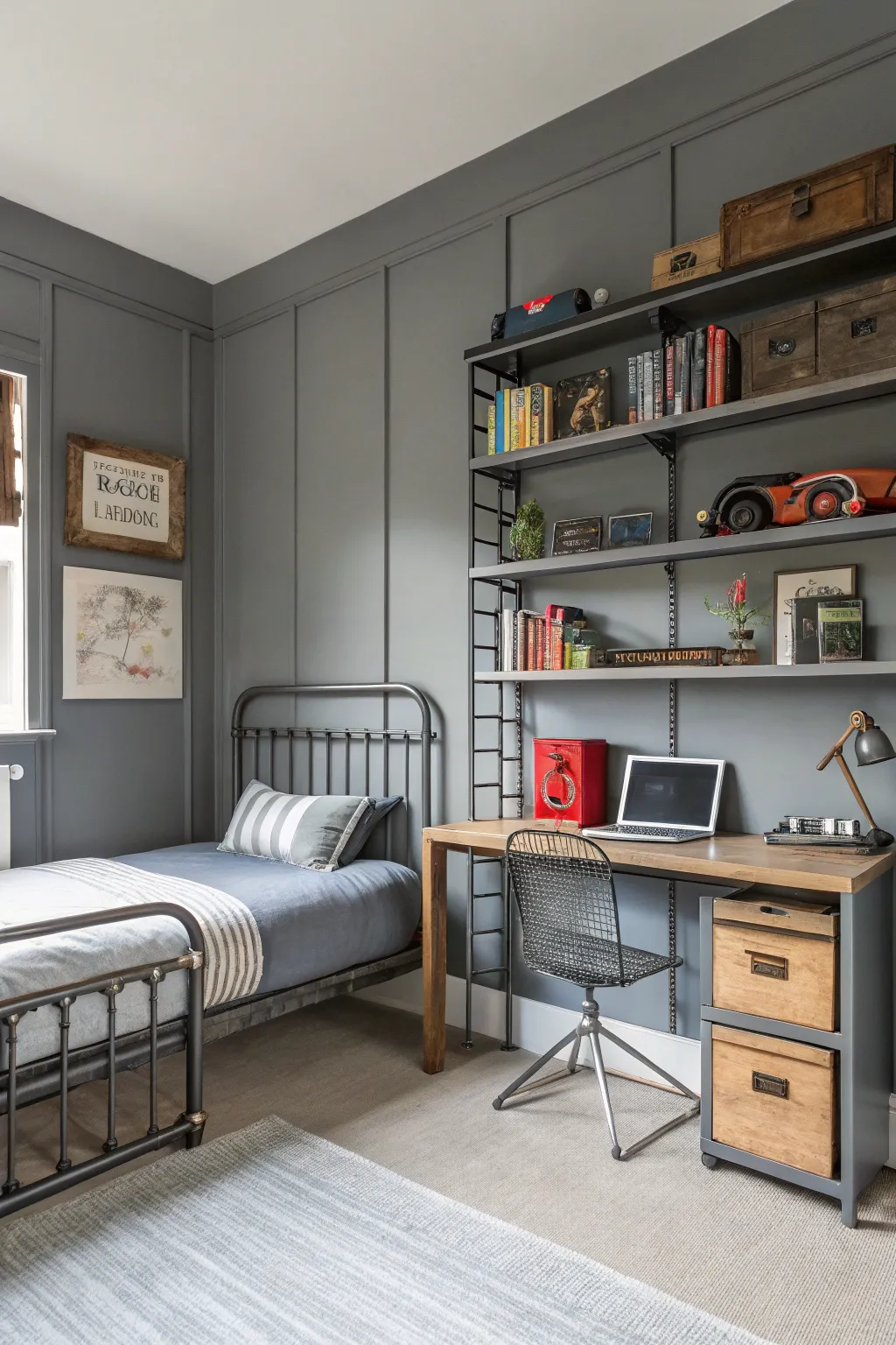 - Metal Wall Shelf Unit: Organize and display with a metal shelf unit, perfect for an industrial-themed room.
