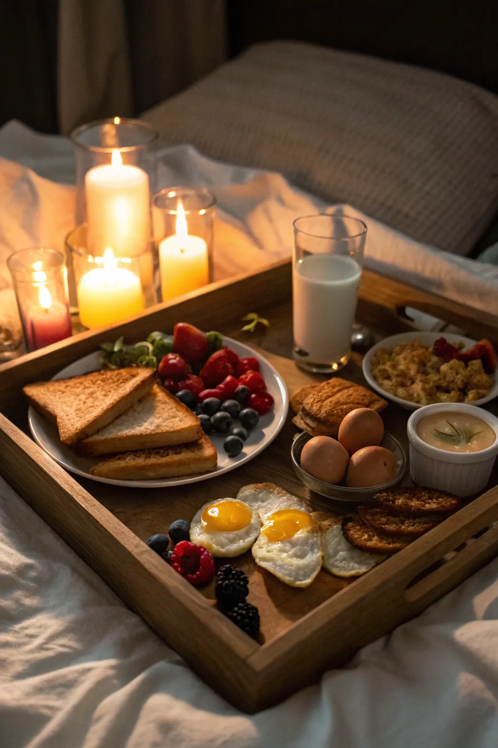 Set the mood with a breakfast by soft light, using gentle lighting to create a warm, intimate atmosphere. It’s one of my favorite ways to make mornings feel special.