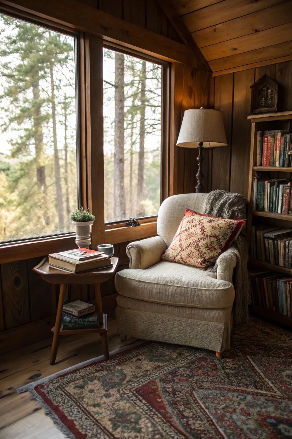 A reading corner in a cabin is a personal sanctuary. I often curl up with an excellent book and a warm cover in mine, losing all track of time.