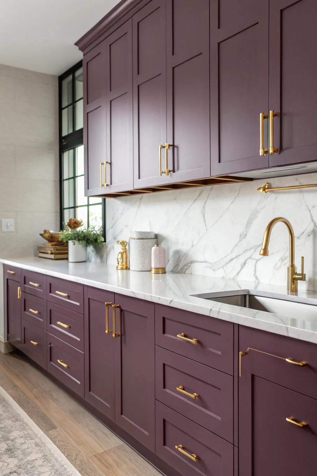To achieve a hint of luxury, contemplate violet units paired with gilded ironmongery. This blend emanates sophistication and can transform any cooking area into a refined haven.