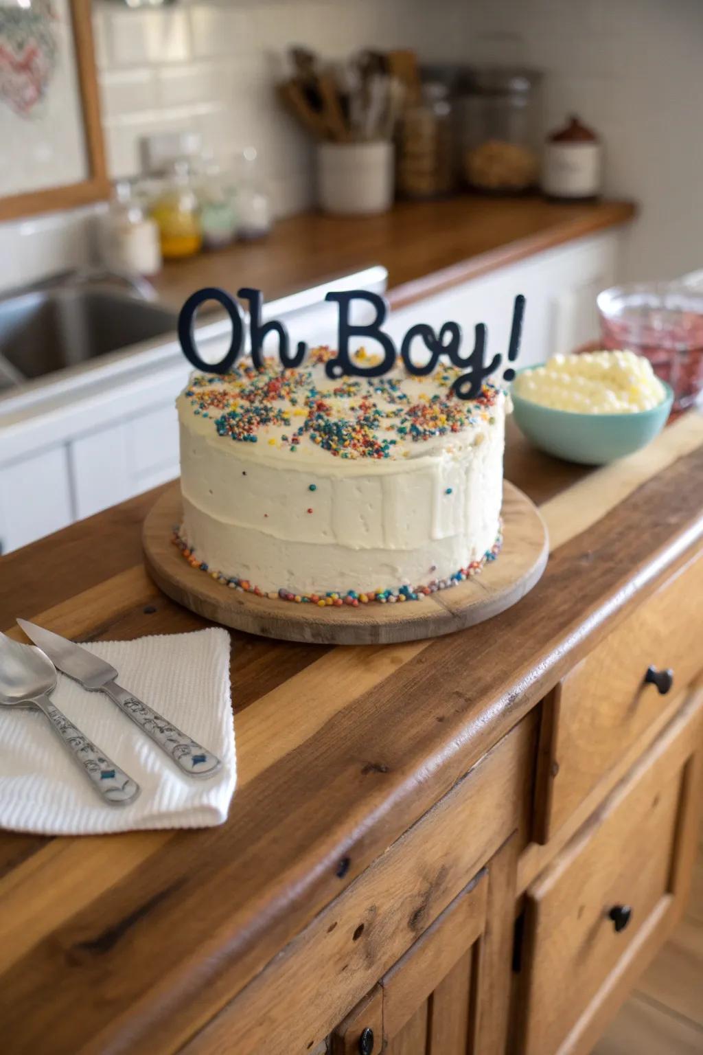 Make a grand statement with an “It’s a Boy!” letter cake. Begin with a foundation of smooth buttercream and then boldly pipe the letters for a playful and celebratory statement.