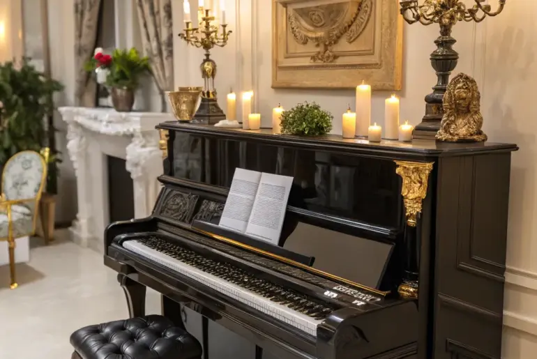 Creating a decorative scheme around an upright piano offers a wonderful opportunity to transform it into an eye-catching centerpiece. Let’s uncover some appealing and unique concepts to elevate your piano’s prominence while harmonizing with your home’s interior. Striking Lighting for Drama An artistic living space featuring an upright piano and dramatic statement lighting. Employ striking lighting to introduce drama and emphasis to the piano setting. A bold floor lamp I once incorporated rendered the piano…