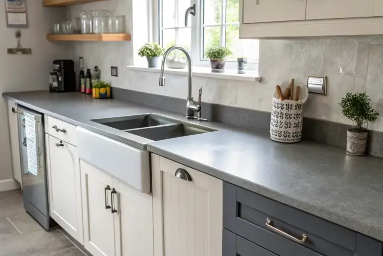 Transform your kitchen into a stylish and flexible area with grey countertops. We’ll explore ideas to integrate these ageless surfaces into your home. Assortment of Grey Hues A kitchen displaying an array of grey hues in its countertops. Play around with different grey hues, ranging from gentle to intense, to pinpoint the ideal match for your kitchen. Each hue imparts a distinct ambiance to the space. A few choices to try: Pale Grey Mineral Composite…