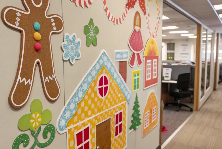 The yuletide season offers a delightful opportunity to adorn your office with festive joy. Why not transform your workspace into an enchanting gingerbread house? With a touch of imagination and some simple materials, you can craft a charming gingerbread-inspired setting sure to bring warmth to your colleagues’ hearts. Confection Garland Threads Confection garlands introduce a playful accent. Suspend garlands fashioned from imitation candy across your office space for a playful accent. I once employed colorful…