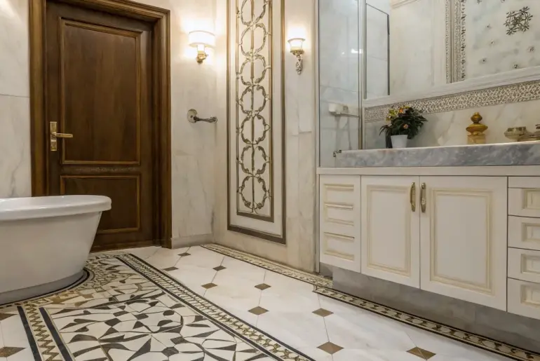 There’s just something eternally captivating about a marble bathroom. It transcends mere elegance, transforming any space into a private haven of refined taste. Elegant Gilded Details Gilded details introduce a whisper of extravagance to the stone landscape. Teaming gilded details with stone has the immediate effect of dialing up the luxury. The warmth and richness that gilded accents bring against the stone’s cooler undertones never ceases to enchant me. A few things you might like:…