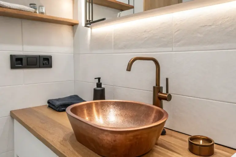 When considering upgrades for your bathroom, a copper sink stands out as a remarkable choice. Simultaneously classic and contemporary, copper sinks have the power to turn your bathroom into an inviting and cozy haven. Crafting a Statement Using a Stand Sink A bronze stand sink adds a touch of drama and elegance to this compact bathroom. A bronze stand sink can serve as a bold statement piece, perfectly suited for smaller bathrooms. Its vertical presence…