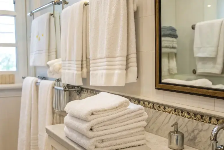 Often overlooked, your bathroom towels have the ability to totally transform your space. Let’s look at some simple yet beautiful ways of turning them into a design centerpiece. Amaze with Unexpected Textures Amaze with luxurious textures for a chic towel display. For a luxurious towel display, try using unexpected textures like velvet or silk. This unexpected twist never fails to pique guests’ curiosity and adds a layer of sophistication. These products might help: Deluxe Velvet…