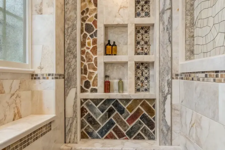 To really elevate your shower, incorporating a stone shower alcove is both functional and beautiful. Let’s look at some inventive ideas that can turn your bathroom into a spa-like escape. Nature’s Impression Greenery within a stone alcove brings life to the shower. Add elements of nature by adding greenery inside your stone alcove. It’s a simple yet effective way to bring life and freshness into your shower space. Possibly helpful picks: Artificial Hanging Plants for…