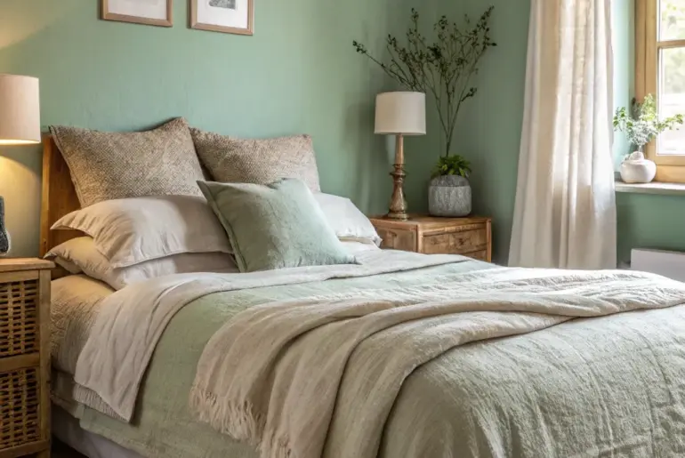 Adorning your bedroom with green walls can breathe a refreshing and peaceful atmosphere into your personal space, reminiscent of a leisurely stroll through the woods. Whether opting for a striking emerald or a delicate sage, these concepts are designed to metamorphose your bedroom into a sanctuary tailored just for you. Blend Green with Natural Neutrals A cozy bedroom adorned with verdant walls and earthy neutral embellishments. Uniting subdued greens with earthy neutrals such as beige…