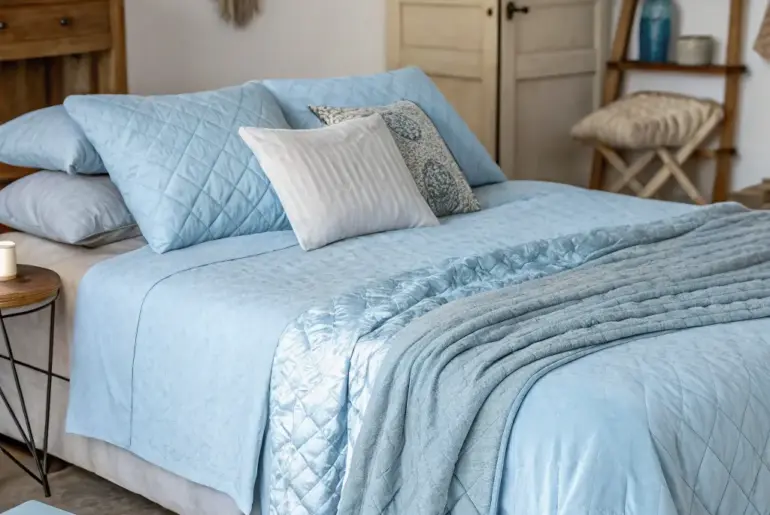 When designing a peaceful and welcoming sanctuary, there’s nothing quite like light blue for a bedroom. This color is incredibly adaptable, able to turn any room into a tranquil escape while giving you so much creative freedom. Touch of Shimmer A glamorous bedroom uses light blue and metallic accents for a sophisticated style. Add a touch of glamour with metallic accents like brass or chrome against a light blue background. This pairing creates a look…