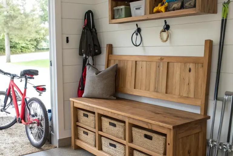 Changing a section of your garage into a mudroom can completely revolutionize your home’s organization. Let’s discover twenty inventive concepts that merge practicality with elegance to fashion the ultimate garage mudroom. Comfortable Seating Area Comfortable seating renders the mudroom a cozy location to commence and conclude your day. Fashion a comfortable seating area with cushions or pillows. In my estimation, appending comfort to functionality transforms each visit to the mudroom into a pleasant one. Try…