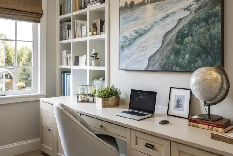 As we’re shaping our most personal spaces, dedicating thought to the home office is vital. Let’s explore how to turn this space into one that truly speaks to your individual spirit and caters to what you need. Distinctive Character Personal style shines through in this uniquely decorated office. Add distinctive elements that show off your personality and preferences. A space that feels personal and meaningful makes you feel more comfortable and creative. May just do…