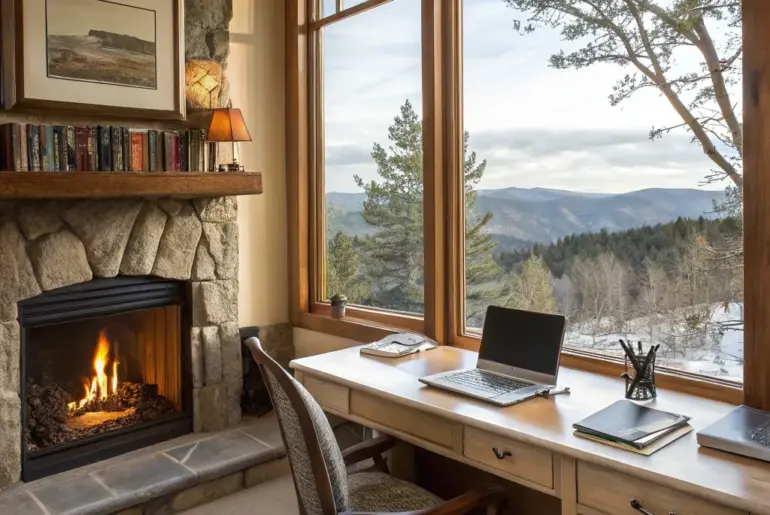 Envision turning your home office into a warm and stylish retreat simply by adding a fireplace. Whether you prefer a modern or traditional design, a fireplace can be the defining element that introduces both coziness and enhanced concentration to your personal workspace. Elegant Parisian Influence Parisian-inspired elegance in the office space. Incorporate Parisian elements like molding and a marble flame feature for an elegant and sophisticated look. This style elevates the aesthetic of any workspace…