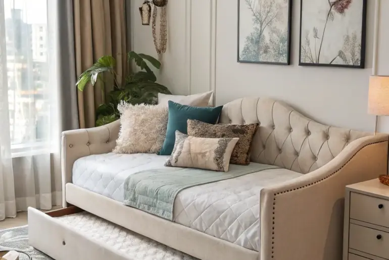 In today’s world, where space is often a premium, it’s crucial to discover effective space-saving solutions for your shared bedroom. Let’s delve into some ingenious and elegant concepts to maximize your area without compromising on aesthetics. Pull-Out Beds: Discreet Sleep Solutions Pull-out bed providing additional sleep space Pull-out beds provide an ingenious way to stow away an extra sleeping surface. I’ve always admired how they offer additional sleeping arrangements without taking up much-needed floor space.…