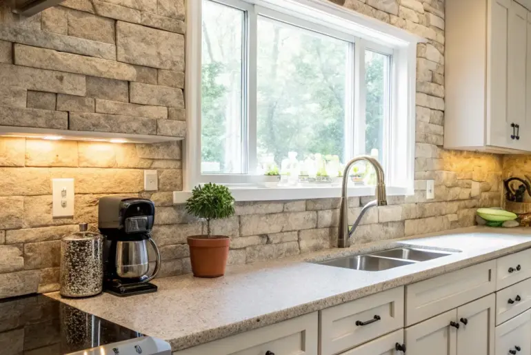 The combination of a backsplash with white cabinets opens up a realm of thrilling and boundless design possibilities. Let’s explore some imaginative concepts that promise to elevate your kitchen from the ordinary to the extraordinary. Grounded-Tone Tiles Grounded-tone tiles add warmth and balance Ground your kitchen design with grounded-tone tiles, creating warmth and a natural aesthetic. They complement ivory cabinets beautifully, fashioning a balanced appearance. These products might help: Natural Rock Pattern Wall Decorations: Improve…