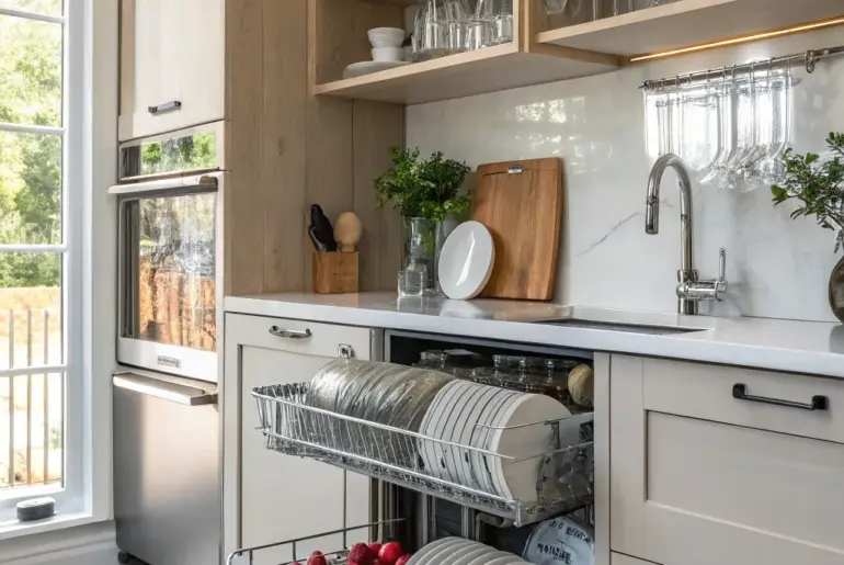 Is your small kitchen making it hard to find room for a dishwasher? Allow me to show you some brilliant ideas for fitting this must-have appliance in without losing space or style. Harmonious Design Harmonious dish cleaner design for a unified kitchen look. Go for a harmonious design where the dishwasher goes well with your kitchen cabinets. It disappears from view, making everything flow together, like the perfect notes in a song. Check these products…