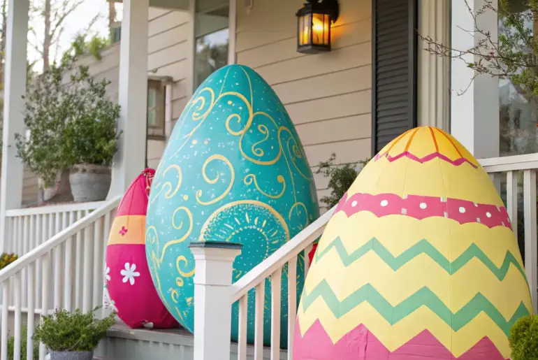 With spring’s arrival, the opportunity to breathe new life into your porch for Easter beckons! Allow’s explore some innovative concepts to imbue your porch with celebratory allure. Suspended Egg Embellishments Suspended egg ornaments impart a playful aspect to your porch setting. Suspend egg ornaments from the porch’s ceiling, creating an enchanting visual. I am delighted by their gentle sway in the passing breeze. May just do the trick: Assorted Suspended Egg Ornaments: Illuminate your porch…
