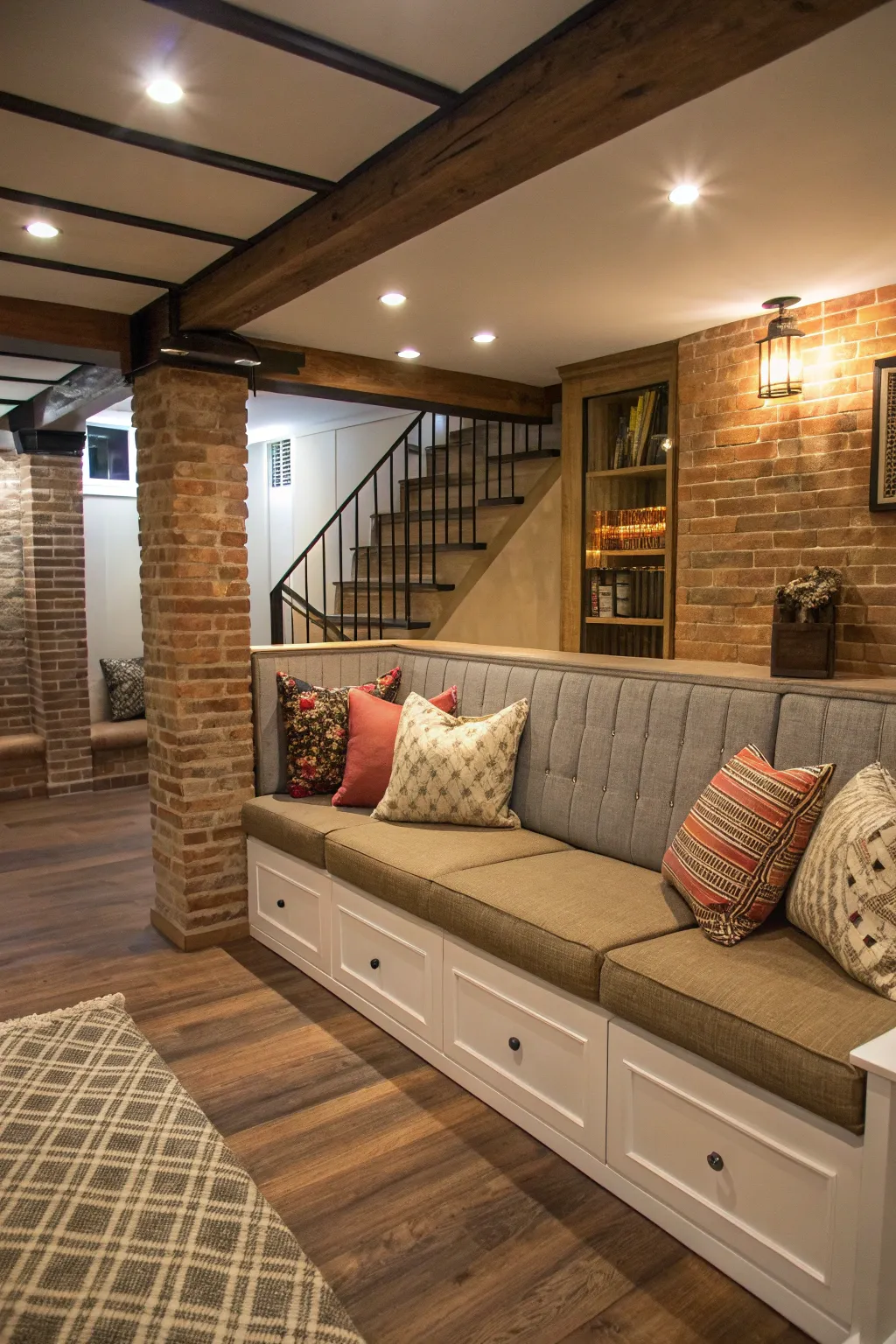 • Compact Sofa: Select a compact sofa for style and comfort without overwhelming your low-ceiling basement.