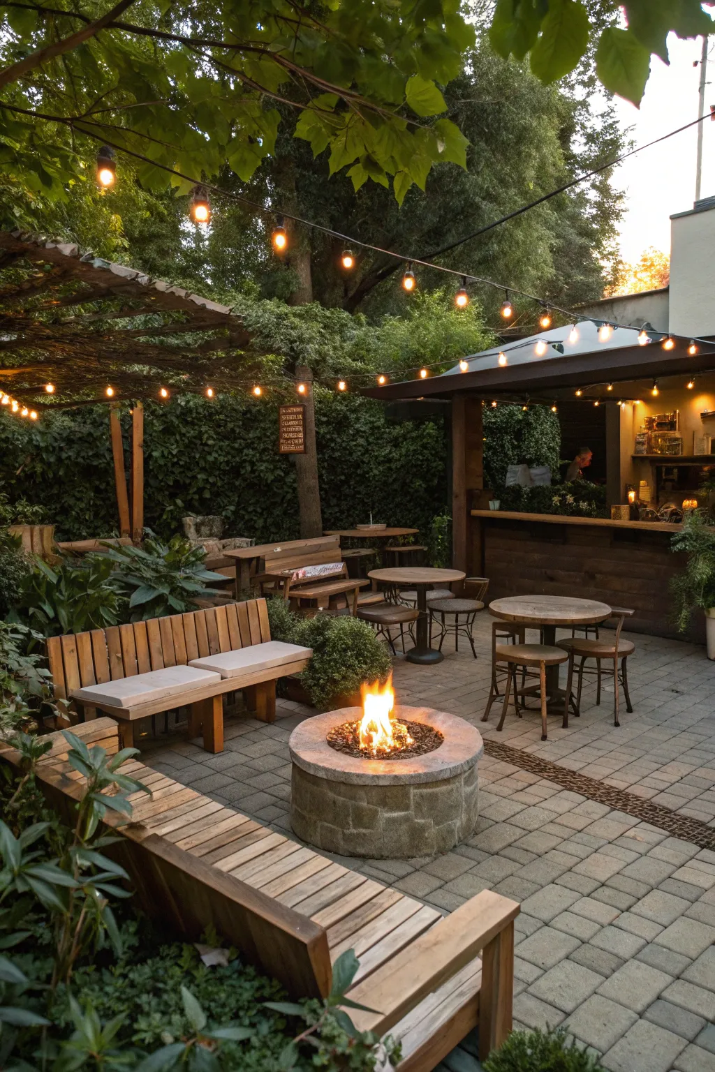 Include a fire pit nearby for warmth and ambiance during cooler evenings. It’s a feature I’ve relished within my garden, rendering every coffee moment feel especially remarkable.