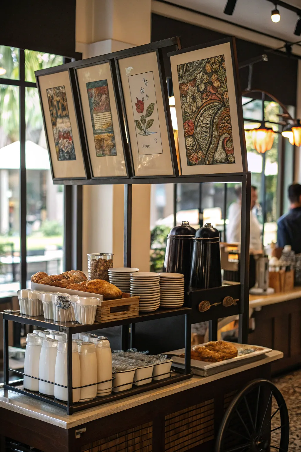 - Encased Art Prints Collection: Enhance your coffee cart using an encased art prints collection, ideal for seasonal updates.