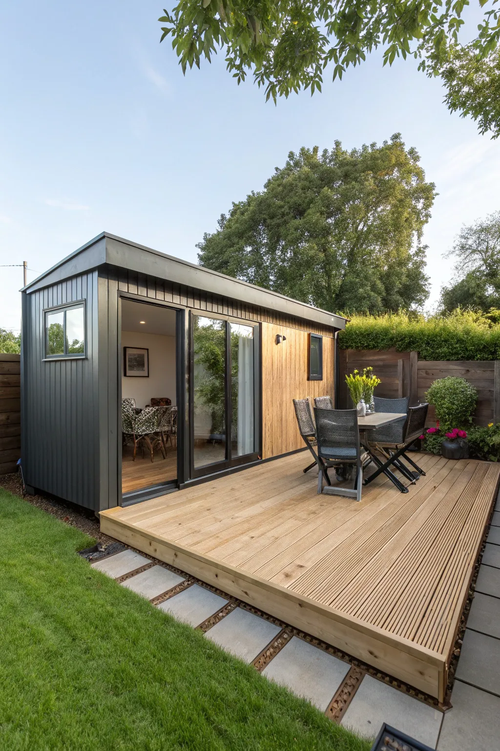 Integrate different materials like timber, metal, and glass for a genuinely contemporary outbuilding. This combination not only enriches visual interest but also enhances the resilience and usefulness of the framework.
