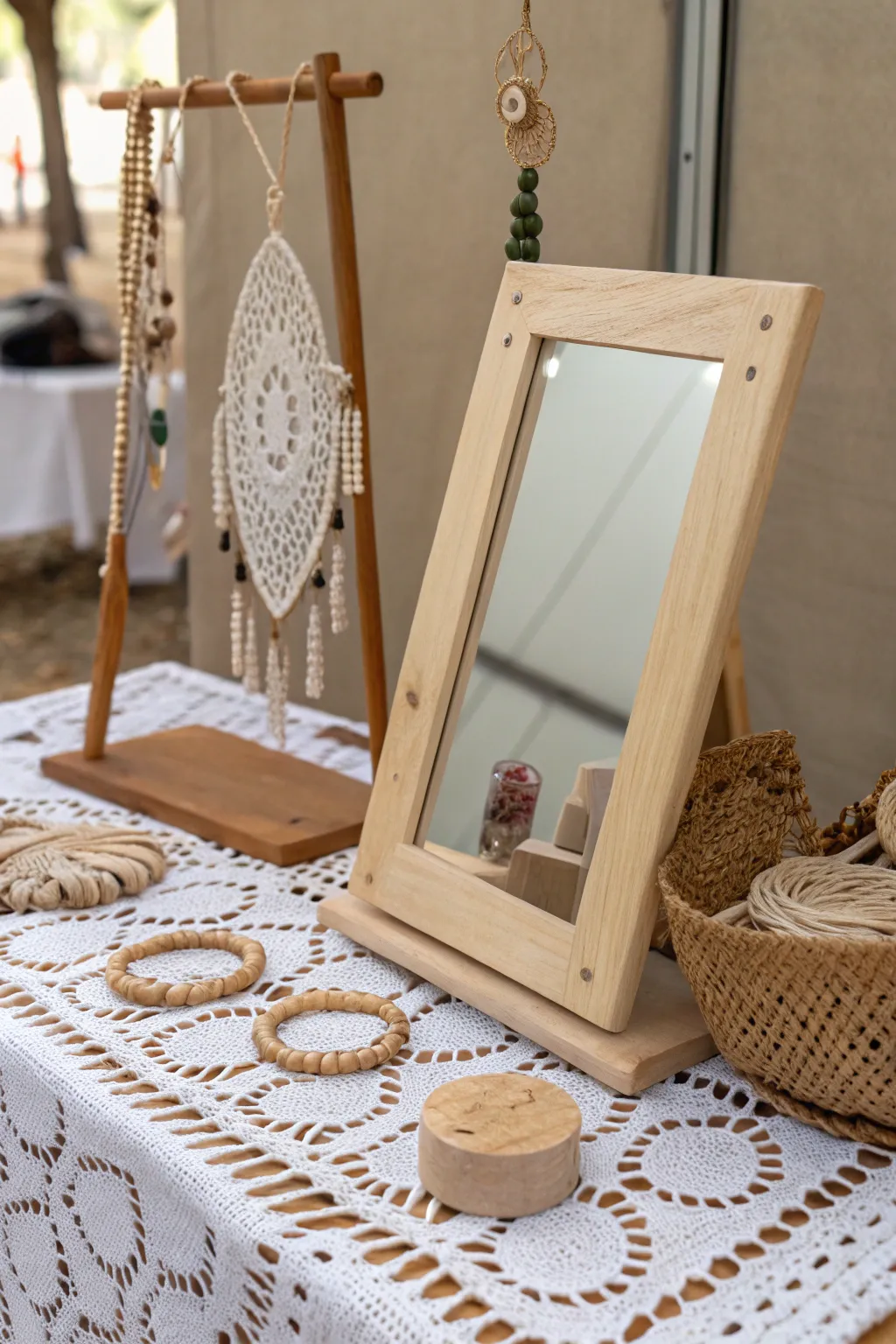 A mirror area encourages customers to try on items, fostering a direct connection with your items. I even had a mirror once that was so well-loved, someone wanted to buy it!