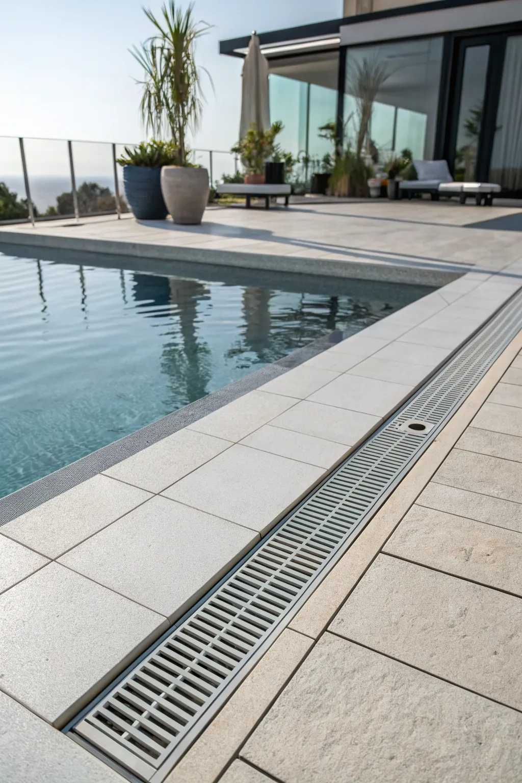 Envision this: a longline drain stretching gracefully along the edge of your pool, channeling water away with effortless grace while exuding sophistication. I truly admire how they maintain a pristine and organized look!
