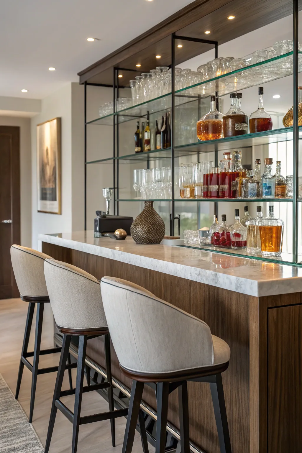 - Crystal Shelves for Bar Display: Display your finest spirits elegantly using sturdy and clear crystal shelves within the bar area.