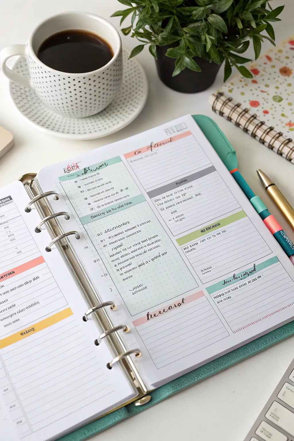 - Vibrant Tab Separators: Use vibrant tab separators to easily categorize and access different sections of your planner.