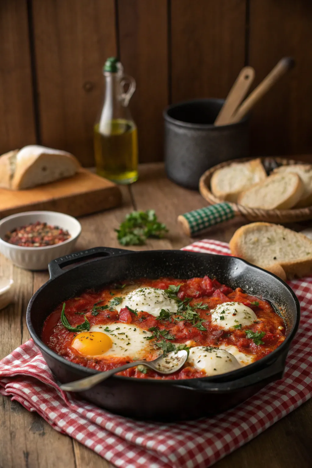 Explore a pan of shakshuka with soft eggs in a spiced tomato sauce. It’s a dish that’s as visually impressive as it is tasty.