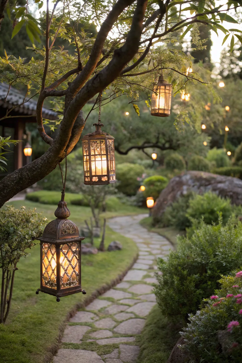 - Period-Style Suspended Lights: Change your garden path with period-style lights, adding charm and coziness to nighttime events.