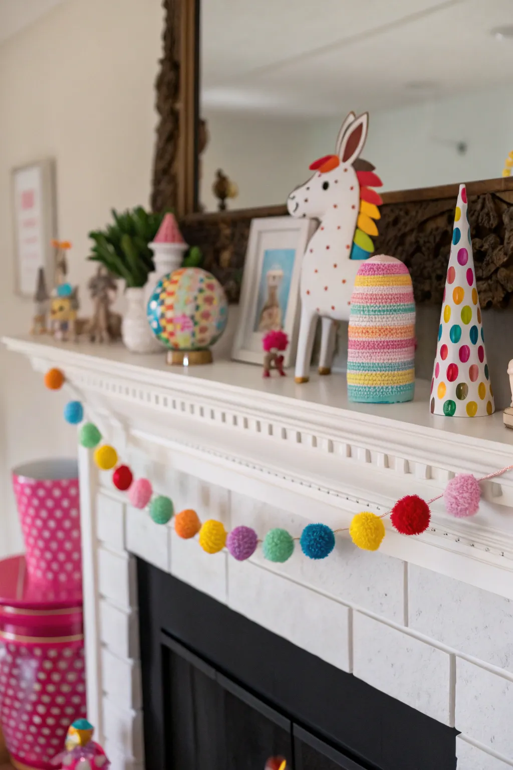 - Vivid Fiber Garland: Brighten your mantel with a lively pom pom garland and add playful charm to your décor.