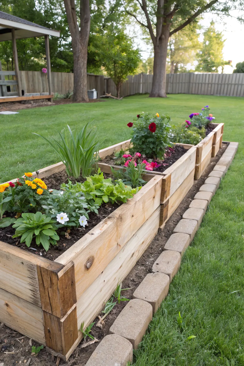 For an economical option, wood skids can be repurposed into charming borders. I’ve applied this in my garden to incorporate an environmentally conscious aspect.