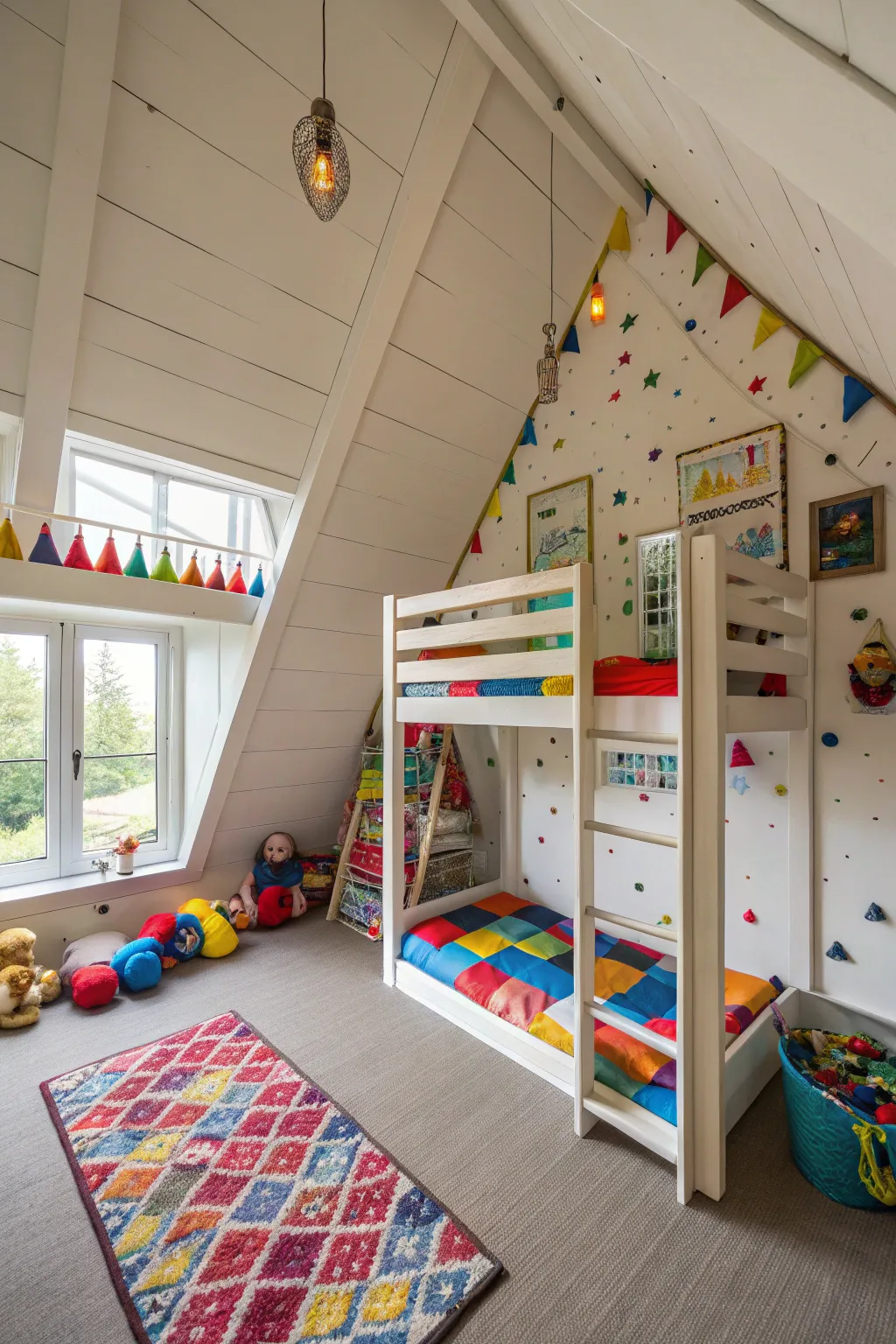 Conceive a vibrant, secure domain for youngsters by interweaving stimulating components like loft beds or a climbing structure. My own children are enthralled with their attic play space, which sparks their inventiveness.