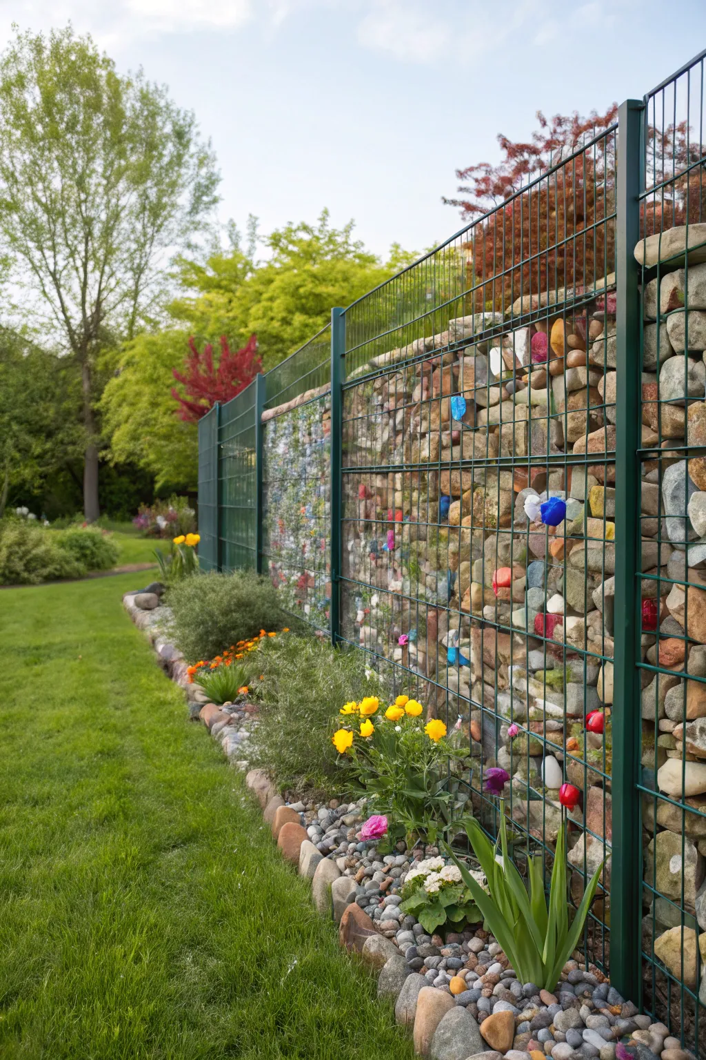 Customize your gabion fence with creative rock fillings.