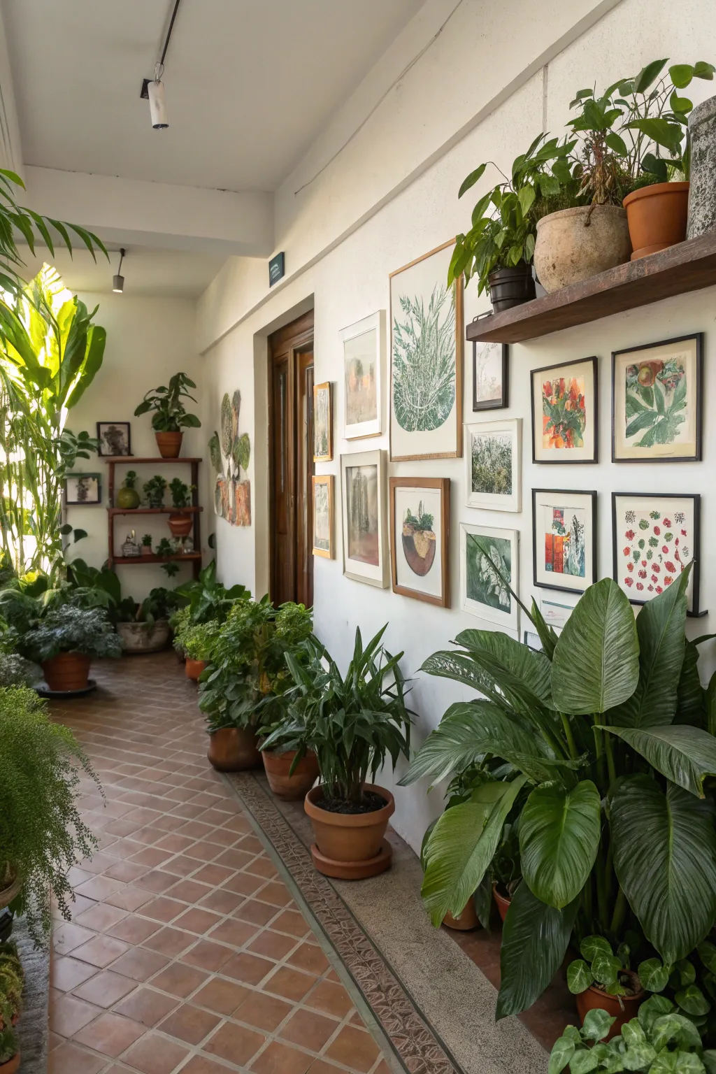 Infuse plant life within your curated art space to introduce a refreshing and energetic element. I’ve discovered that interspersing potted greens with my art pieces enlivens the room with an unmatched organic charm.
