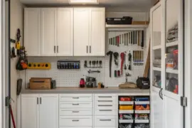Set up a specialized tool corner, complete with pegboards and cabinets, ensuring quick access to all your tools. Having this system in place has simplified both finding and storing tools in my garage.