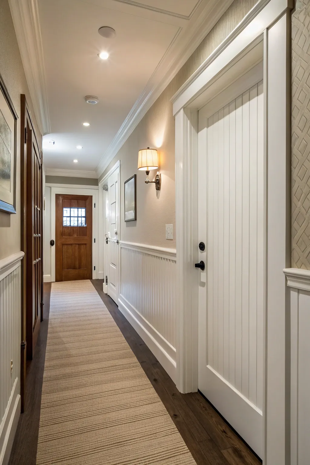 - Beadboard Wall Panels: Upgrade your hallway with elegant beadboard panels for a seamless, decorative wall finish.