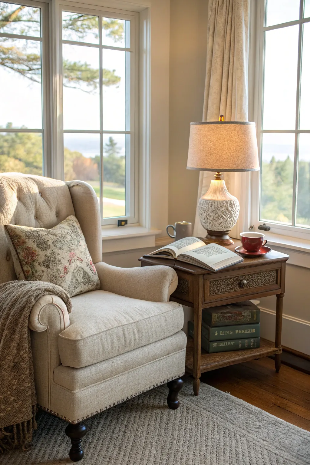 - Stylish Accent Table: Blend practicality with style by adding a chic table for your novels and refreshments.