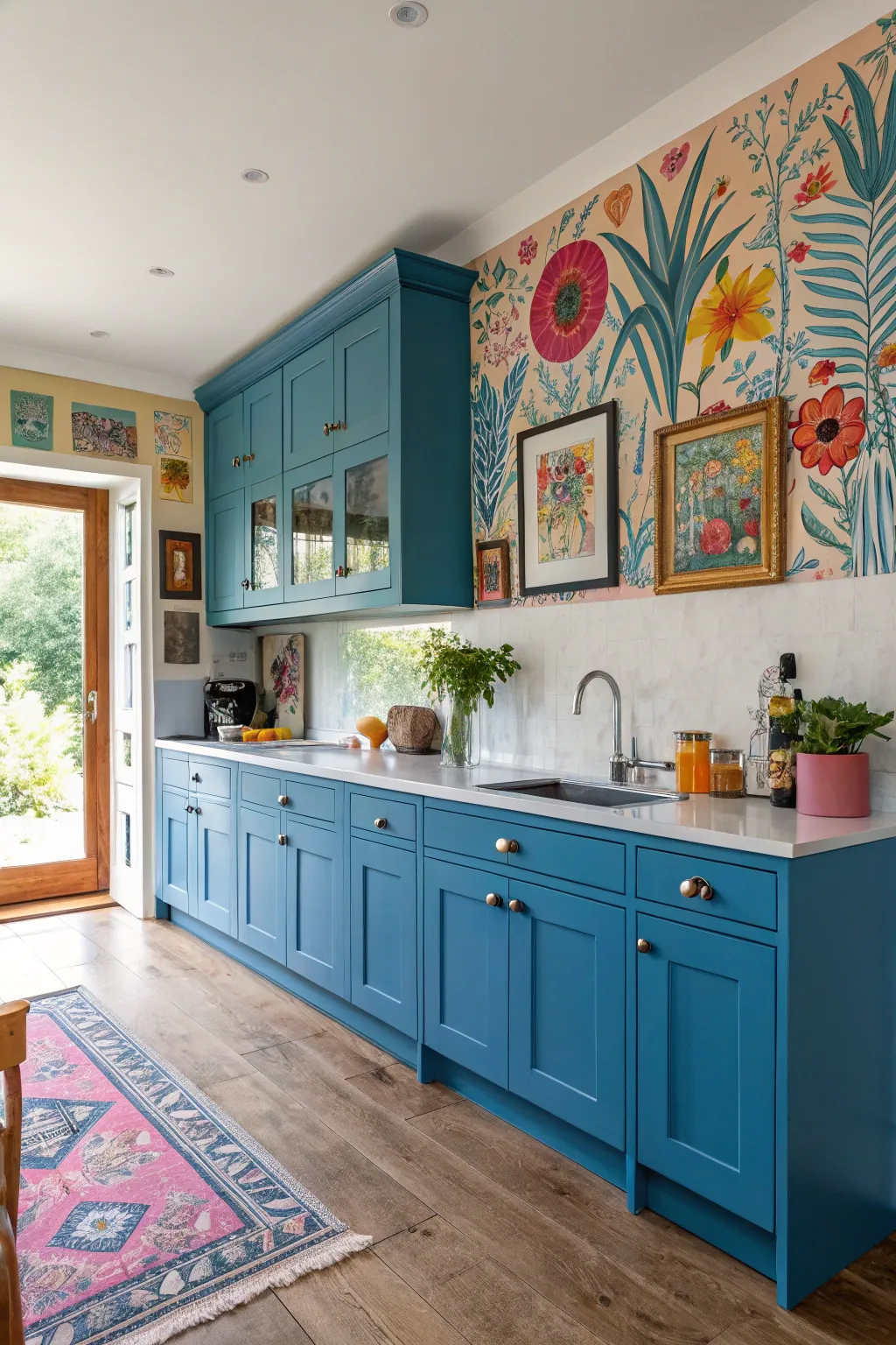 - Colorful Floor Covering: Introduce warmth and comfort with a colorful floor covering, complementing your artistic kitchen design.