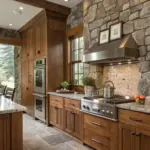 Savor the inviting essence of a farmhouse kitchen with rustic pendant lights crafted from materials like lumber or wrought iron. They introduce a hint of comfort that fondly reminds me of my maternal grandma’s cooking space.