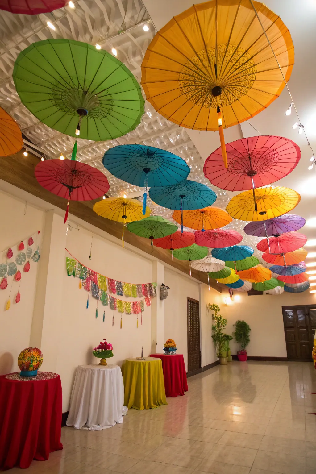 • Multicolored Suspended Umbrella Décor: Revolutionize your chamber with suspended umbrellas to engender an animated and enchanted atmosphere.