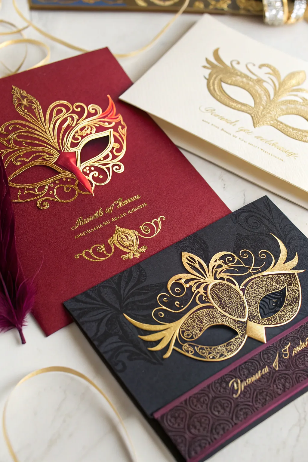 Design invitations that echo your theme through rich hues and mask patterns. I can attest that these subtle details greatly enhance anticipation.